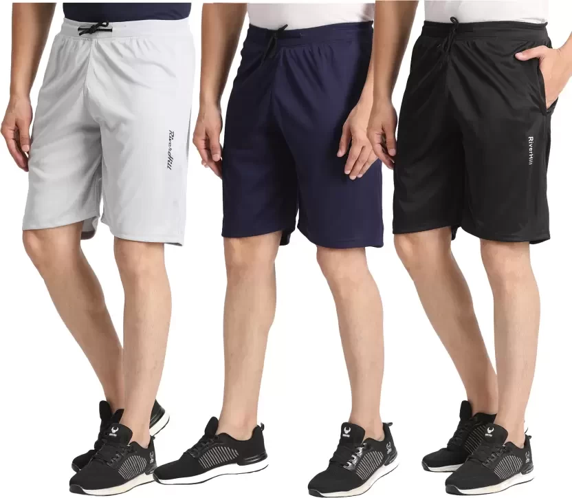 Pack of 3 Solid Men Dark Blue, White, Black Regular Shorts