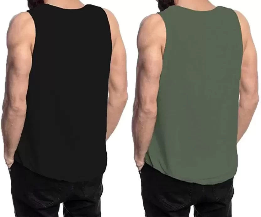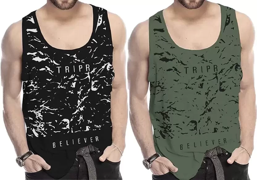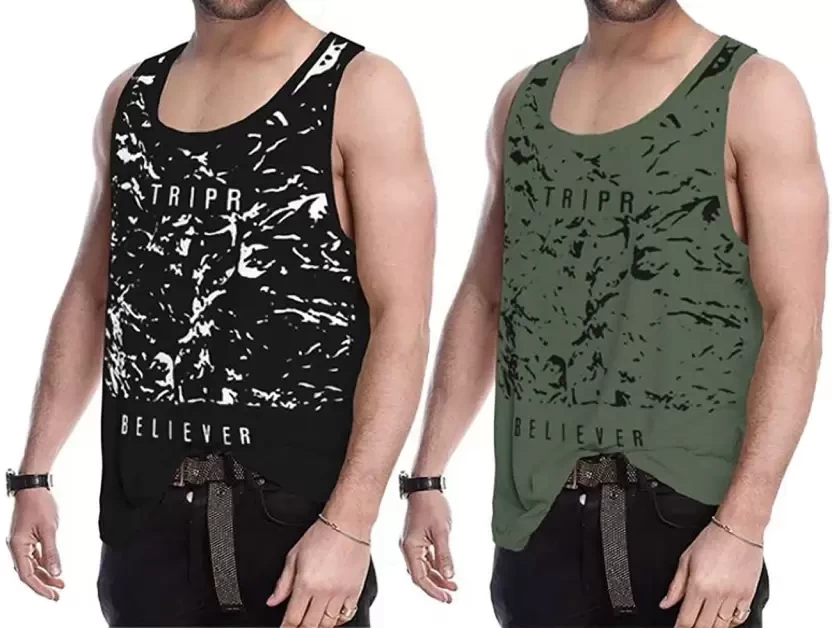 Pack of 2 Men Printed Round Neck Cotton Blend Green, Black T-Shirt